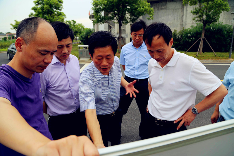 ,省“五水共治”督查組一行來到江濱水處理公司就濱海印染產業集聚水務配套工程建設情況開展調研督導。區委常委、常務副區長丁生產,濱海工業區、區環保局相關領導及集團副總經理馮梁峰等陪同。