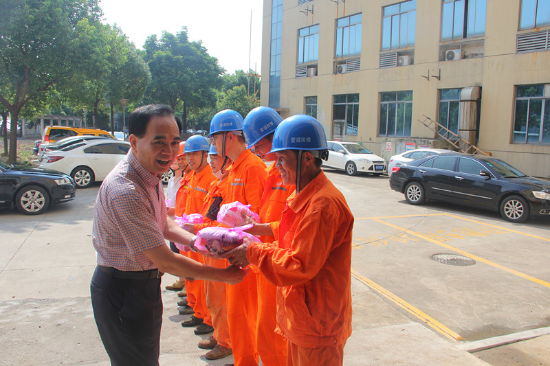 7月25日,集團組織開展高溫慰問活動,集團黨委書記、董事長周儉,黨委副書記、總經理單寶子等領導班子成員分組深入生產建設現場,看望、慰問奮戰在高溫一線的廣大職工,向他們為保障供排水安全運行付出的辛勤勞動表示衷心感謝,并要求相關人員要落實好高溫工作的防范措施,做好防暑降溫工作,確保員工身體健康,系統運行安全。