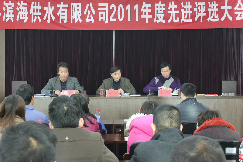 下午,公司在三樓會議室召開了2011年度先進評選大會。公司領導班子、部室負責人及職工代表共48人參加會議,會議由總經理陳劍主持。